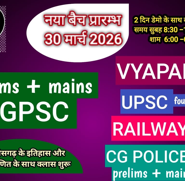Since 2009, shaping dreams with expert guidance and trusted coaching for CGPSC, UPSC, Vyapam, Railway, and SSC exams.